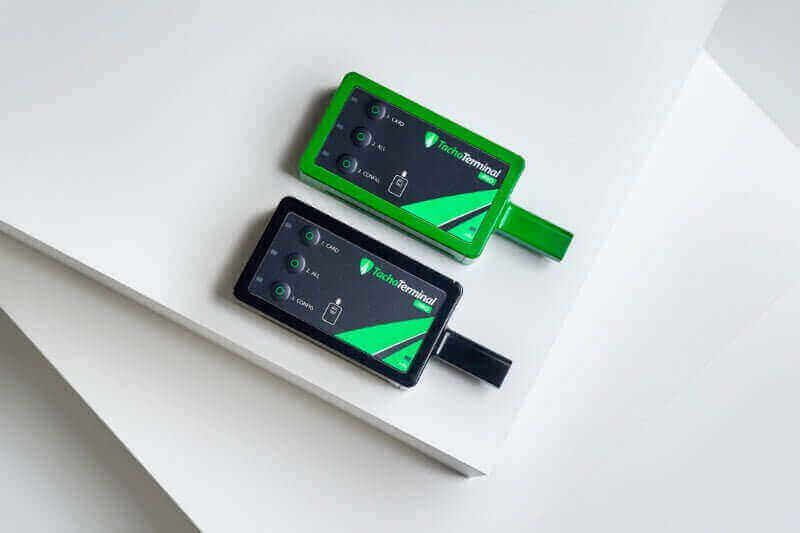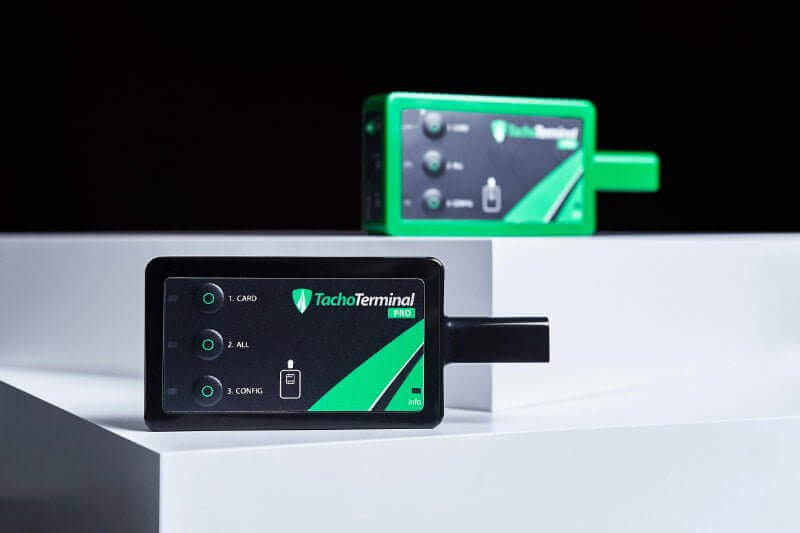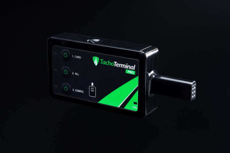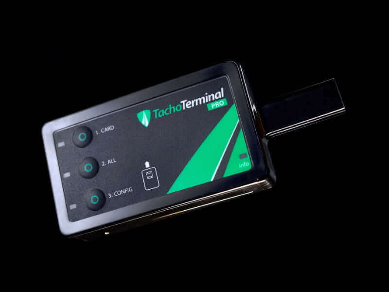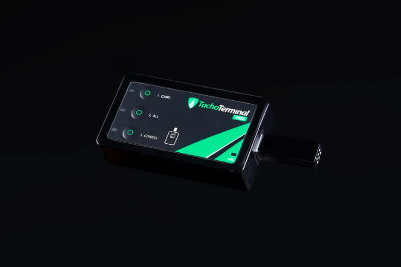 Cheie de descărcare universală pentru descărcarea datelor de la tahografele digitale și cardurile șoferilor. TachoTerminal Pro 3 vă permite să descărcați date oriunde prin intermediul unui cititor de carduri inteligente integrat și al sistemului său de alimentare integrat. Datele de pe cardurile de șofer pot fi descărcate în două moduri diferite: prin intermediul tahografului digital și direct cu ajutorul unui cititor de carduri de șofer integrat. La descărcarea datelor de pe cardul șoferului prin intermediul unui cititor încorporat nu este necesar să se utilizeze un card de inspecție sau un card de companie. Dispozitivul este echipat cu un modul Bluetooth care, în combinație cu o aplicație mobilă dedicată, permite transferul wireless de date către un smartphone sau o tabletă.